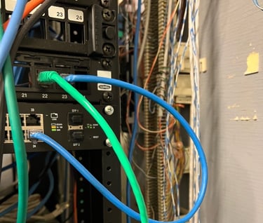 Replaced the broken Ethernet cable with a new one. Camera server is now functional and customer can see all feeds. Buttoned up view.