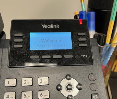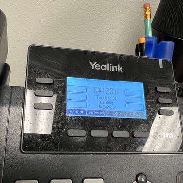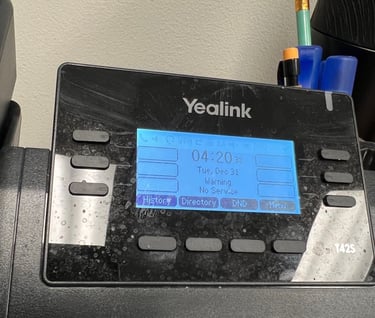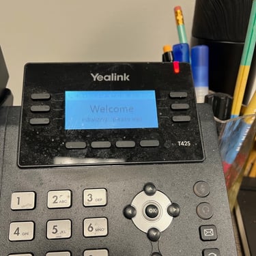 Staff member mentioned desktop phone no longer calls out but it does power on.